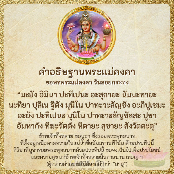 คาถาบชาแมพระธรณ แมพระคงคา พระพาย พระเพลง โอม อคคคงคานง วาโย อาโป ธรณ นะมะพะทะ. ทองไปในแดนธรรม โดย เรอง ไตรเทพ ไกรง ภาพ กลพนธ ศร. วนมาบรรจบอกครง สำหรบเทศกาลวน ลอยกระทง ทตรง.
